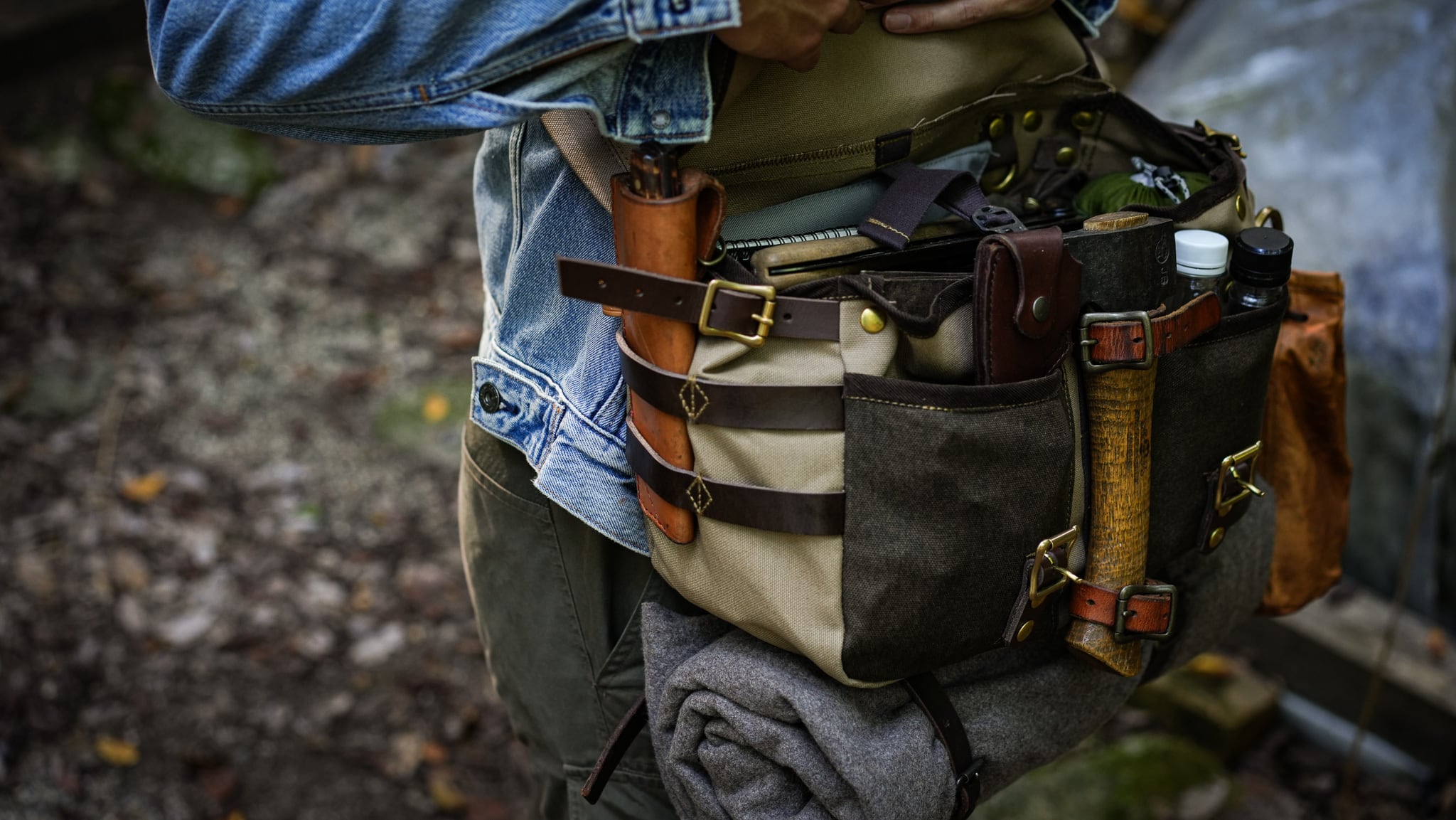 ・底面にもループがあり、販売しているレザーベルトにて長物を巻けます
