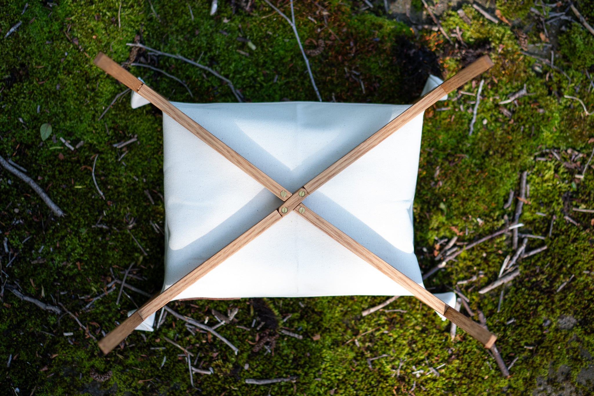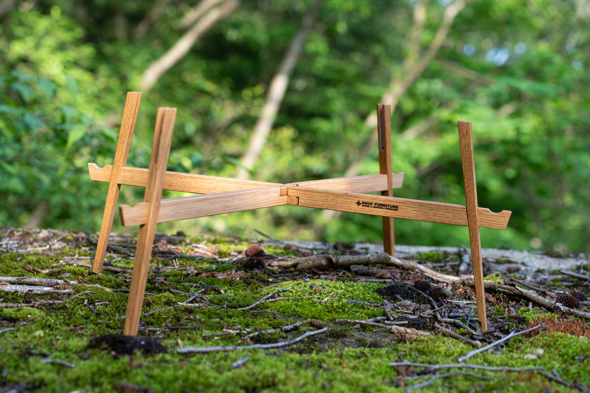 グランドクロスの耳の部分を引っ掛けて簡易テーブルとして