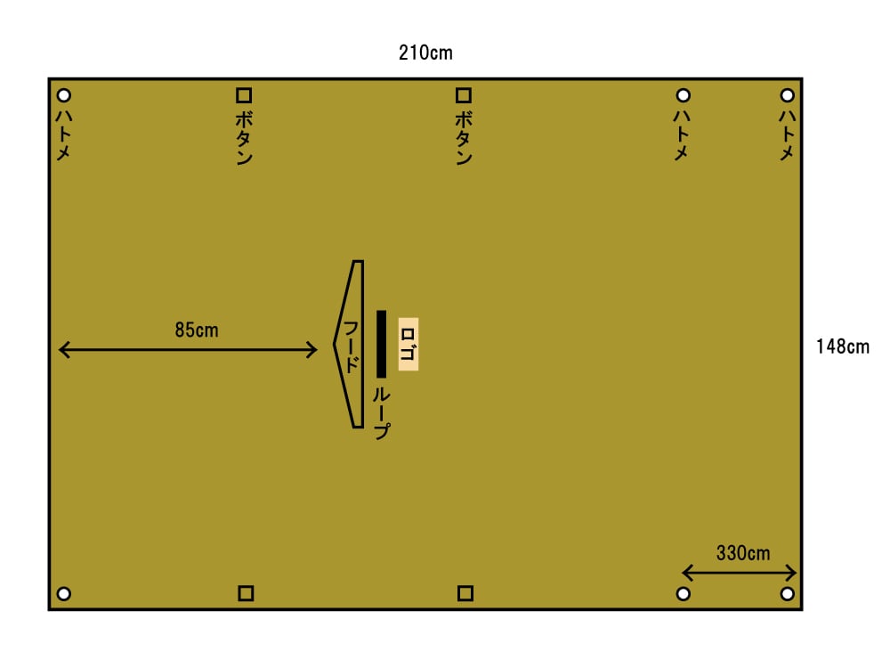 軍幕のポンチョはデカすぎるし、レインポンチョは焚き火で穴が空いてしまうそこで、さっと腰を下ろした時にお尻が汚れないでナイロンや化繊ウェアを焚き火から守れるくらいの絶妙なサイズのポンチョ型にする事にした